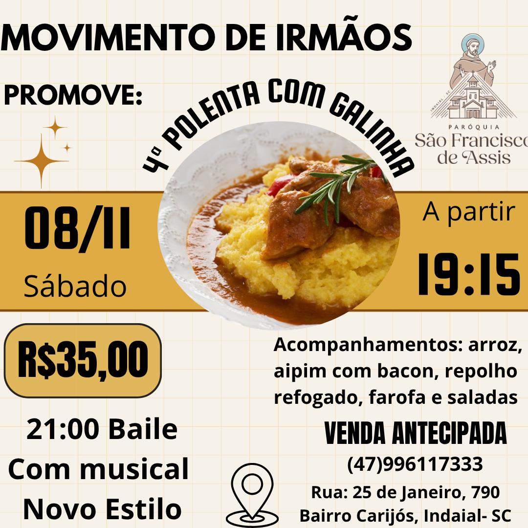 Após a missa Delicioso churrasco, antecipado R$ 55 reais, venda no dia R$ 60 reais.